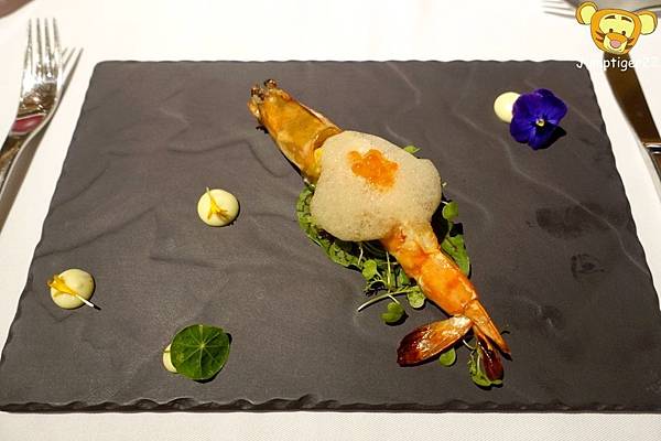 大虎蝦·日本鮭魚卵·鮮蝦醬汁泡泡·細香蔥美乃滋