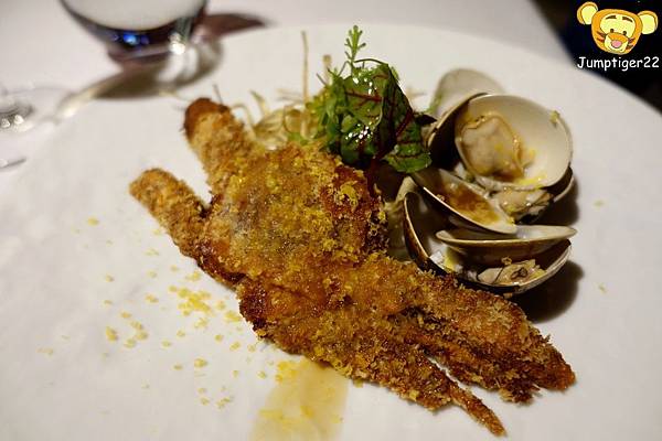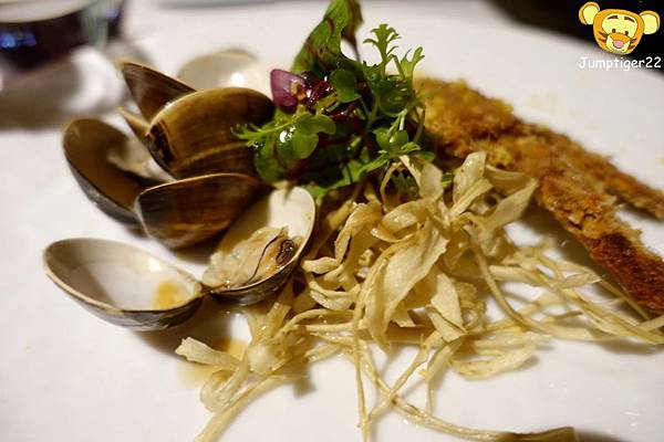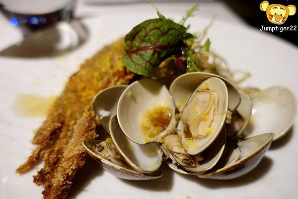 蛤蜊和牛蒡絲真的配角做很好,不出風頭卻默默地襯托軟殼蟹的美好,蛤蜊身上有鹹甜醬汁的調味,在嚐了軟殼蟹後來一口蛤蜊超爽口!