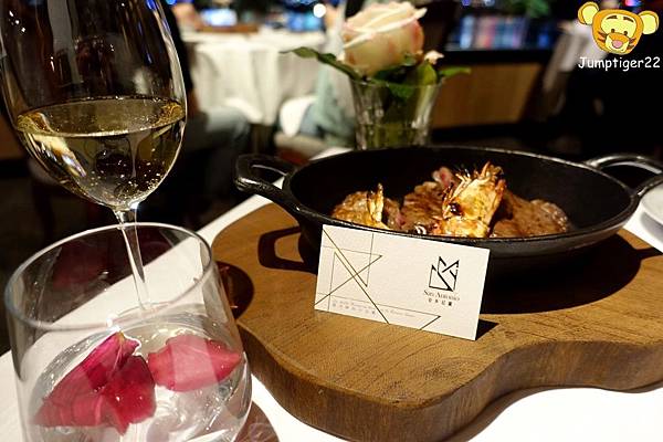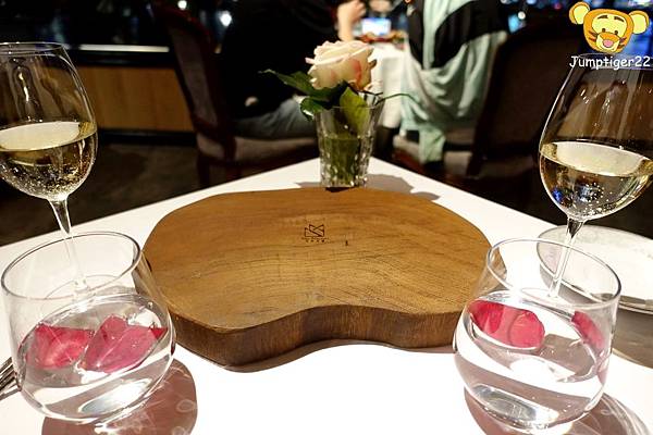 ▼ 倒上餐前水(人家是餐前酒啦我是餐前水哈哈),還很浪漫的加上玫瑰花瓣來點少女風味