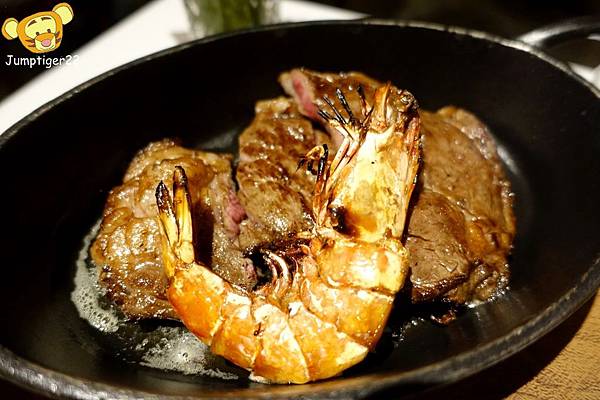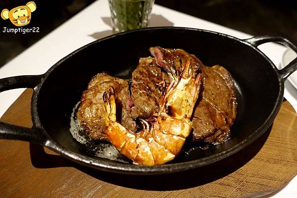 10oz的份量也不少,再加上蝦子的感覺,視覺上是快把鐵鍋佔滿了啦~