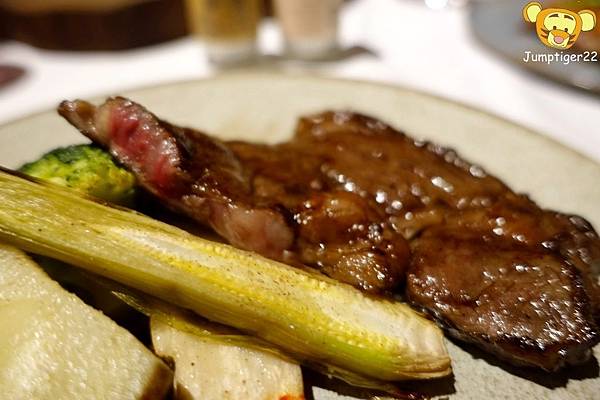 肋眼的油脂較多,所以吃起來除了軟嫩之外更是多汁,肉香質好,果然需要10oz不然跳虎肯定欲罷不能~