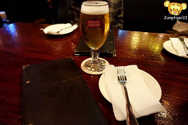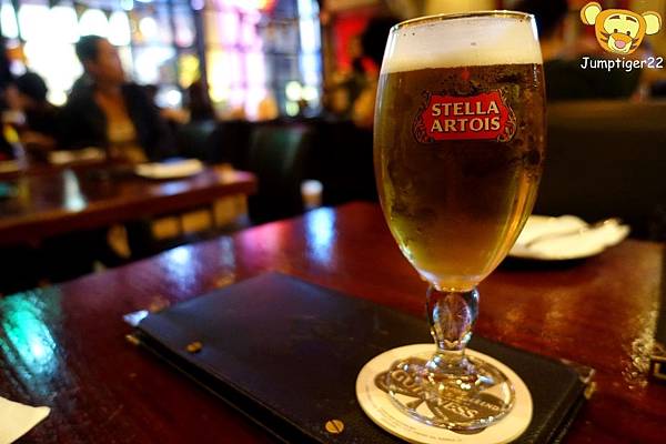 姊姊有點熟練的點了stella artois時代啤酒,比利時的啤酒品牌。