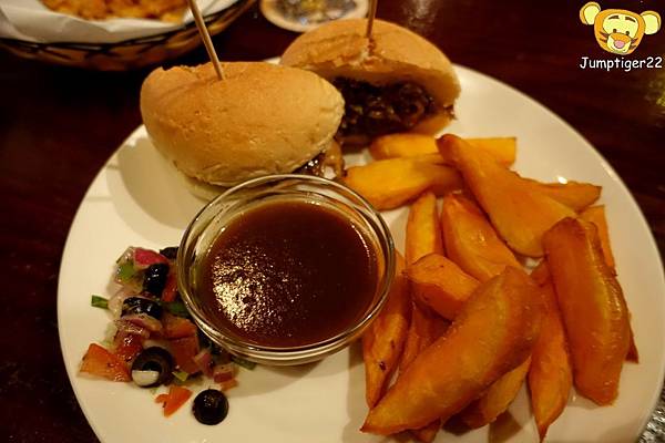 這道餐點還會附上特製健力士啤酒與紅酒調配的牛肉沾醬,酒味比較重一點但很香啦,拿來沾地瓜條變酒香地瓜XD