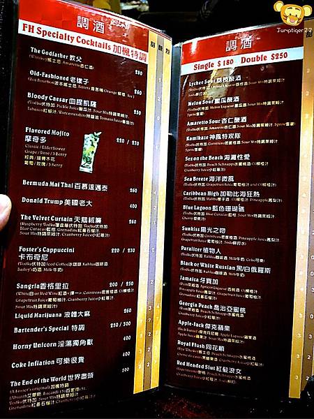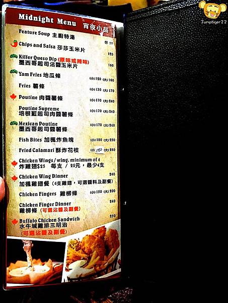 加楓餐廳的菜單,細長型的一本不只酒類選項多,餐點選項也多,店裡燈光有點昏暗我也只能盡力拍了><