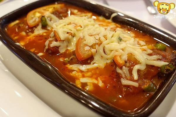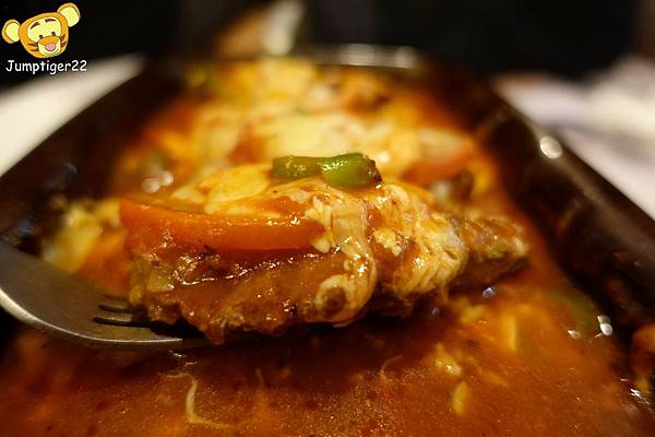 不過這道餐點的基底是番茄醬汁,上頭還在鋪上番茄切片簡直是酸度加倍(跳虎很不耐酸啦><)