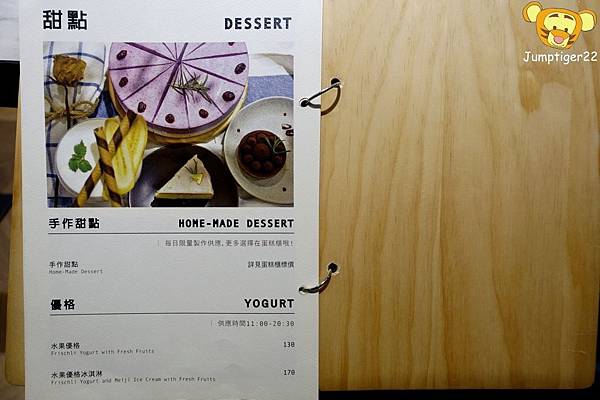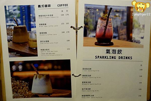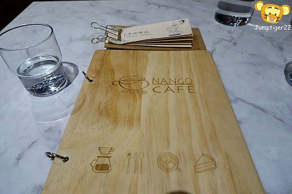 繞了一大圈拍一堆照片後才乖乖入座點餐,南歌咖啡的菜單是用木片夾裝,頗美的這樣封面也不易凹折到