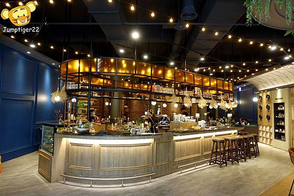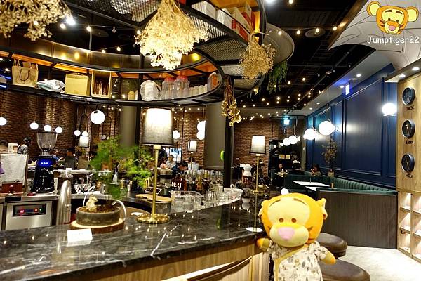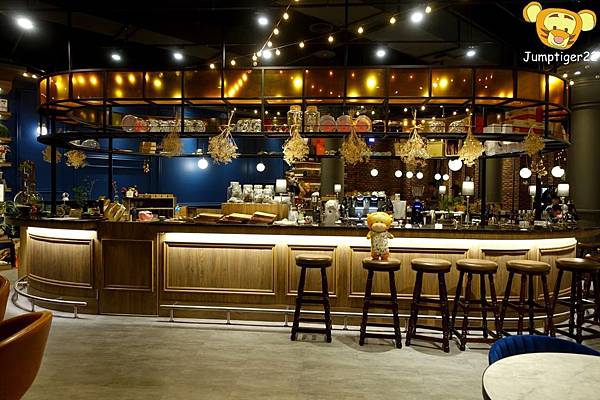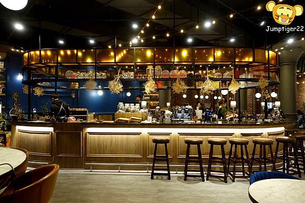 一進到南歌咖啡裡頭,果真超大氣勢的吧台就餐廳中間,而且店裡用了大量的小燈泡來裝飾,暖黃的燈光讓人看起來就很舒適
