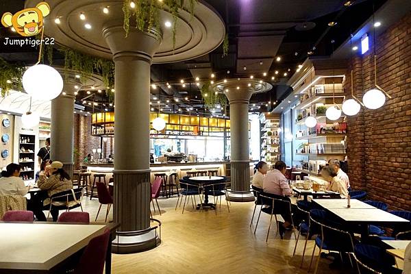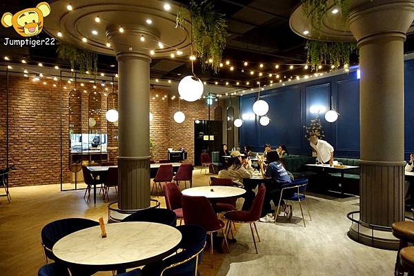 我蠻喜歡南歌咖啡中的柱子設計,如果只是整片漂亮的座位,沒有灰白色的立柱來做一個襯托就會顯得很單調