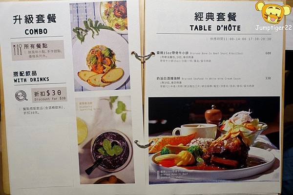 餐點的選項也很多,從牛小排、義大利麵到飯類都有,搭配飲品都可以做折扣唷(折30元)