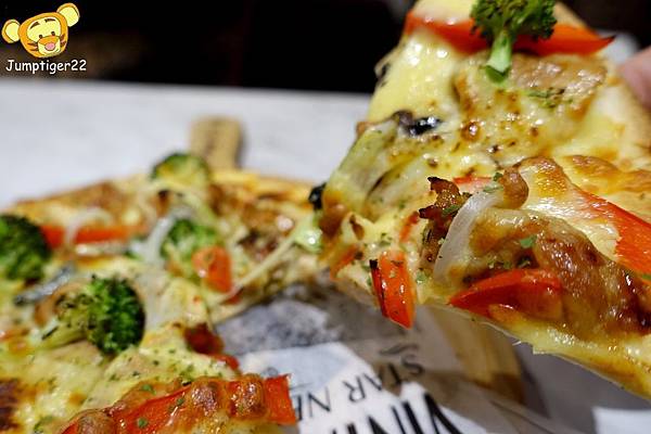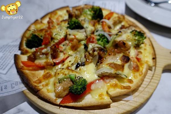 還牽著絲的薄餅起司香超讚,上頭的甜椒洋蔥絲與花椰菜增添不少色彩與鮮甜感