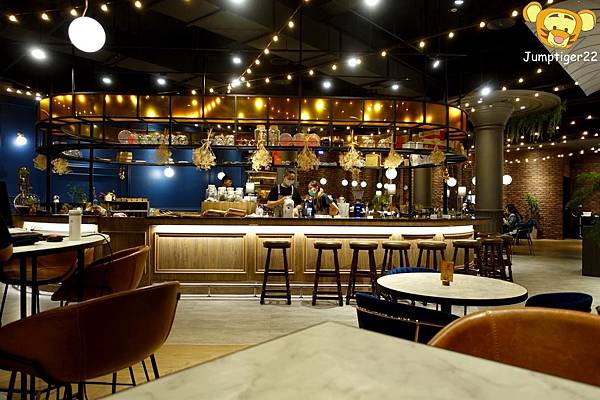 從我們最角落的位置望向吧台的角度還頗不錯,拍了一系列的網美美食照後也漸漸日落,店裡暖黃的燈光就會變得更加明亮