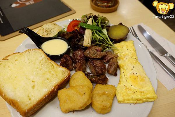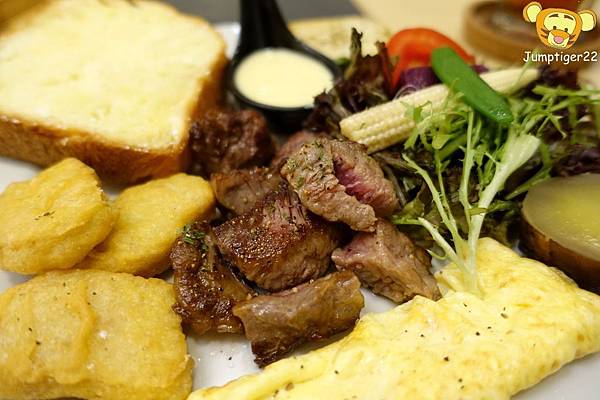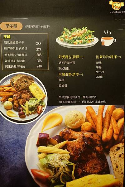 早午餐的餐點供應時間只到下午兩點半,但雞豬牛蔬都有選項!