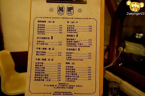 雖然來用餐時的三樓ONE. Bar 暫停營業,可是一二樓的萬吧餐廳還是有啊,沒有一定要喝調酒來吃吃美食也是很可以的唷!