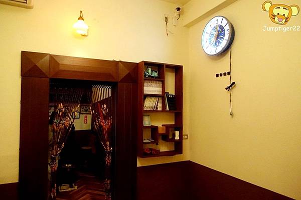 萬吧裡頭的設計都保有老透天的原始風貌,只是額外加上些擺設,不管是木廚、窗簾甚至是時鐘都很復古
