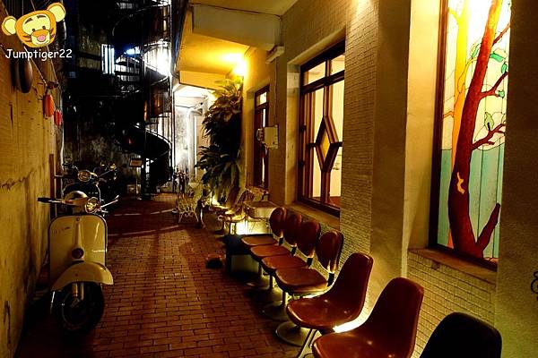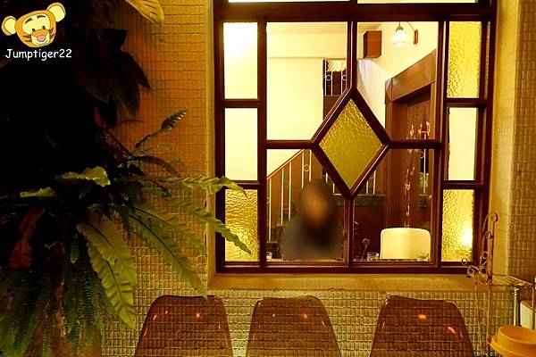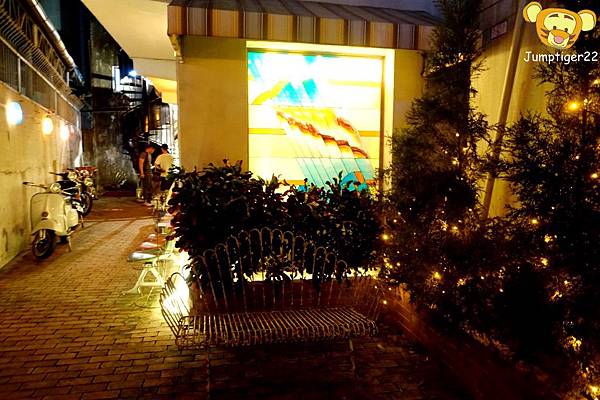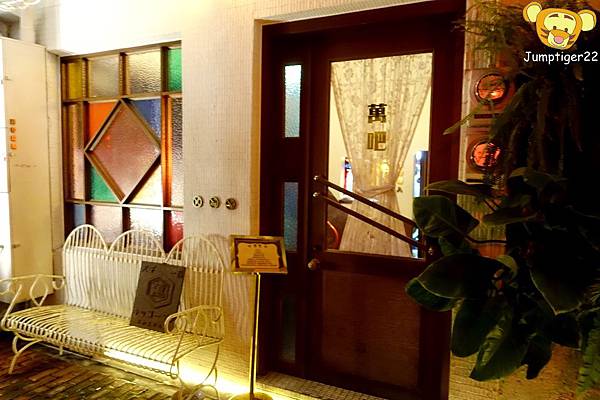 從萬吧的外們要走進店裡還有段路,在這段路的空間之中用色玻璃和小黃燈裝飾,想要在這裡拍點網美照也是很可以的!