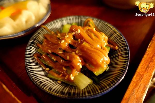 小缽都是開胃的清爽菜色,像是皮蛋豆腐、胡麻蔬菜與醃漬蘿蔔,配飯來說都是非常順口的小菜。