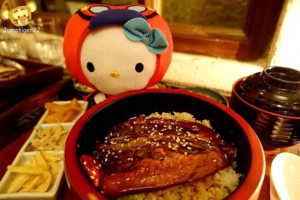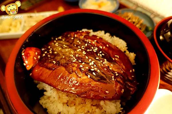 這蒲燒虱目魚的器皿為黑底紅邊的配色,加上舖滿在白米飯上頭的方式,讓人有種品鰻魚飯的錯覺