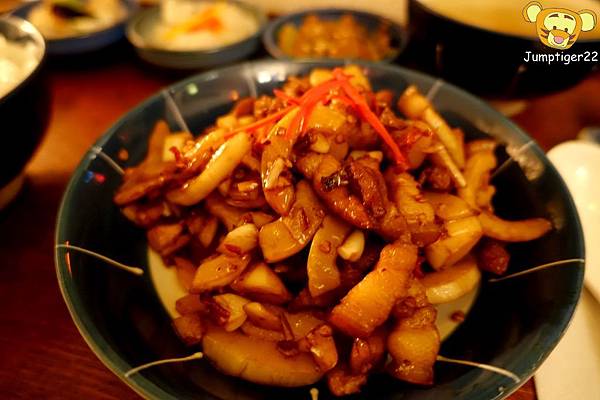 清脆的鹹瓜搭上肥嫩嫩五花肉,辣度大概為小辣級,但不耐辣的跳虎吃一口就要扒兩口飯來配...