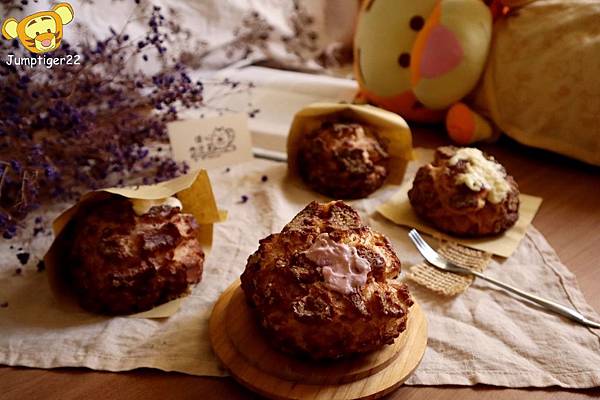 但其實沒有,門口有著當日泡芙口味,大家也不用吃的這麼驚險啦哈哈