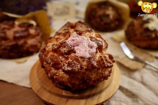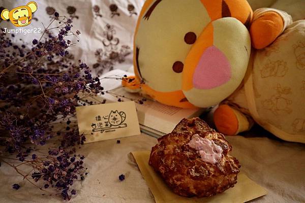小心翼翼剖開美莓,滿滿的莓果餡料填好填滿,聽說裡頭有五種莓果相混而成,但必須說跳虎最吃得出藍莓的香氣