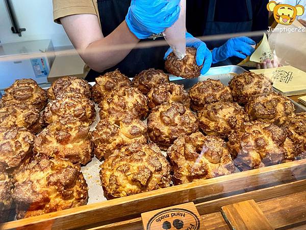 只有三小時的時間,現點現填才能保持泡芙酥脆,不過工作人員動作也很快,所以像我們一次買8顆,三、五分鐘左右就好了實在好俐落!