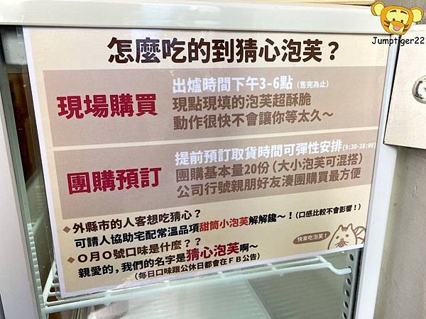 關於怎麼吃到猜心泡芙,店家也很貼心的放置告示牌