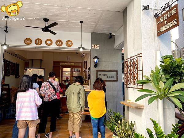 純白色的外觀用綠色植栽裝飾,小小的招牌『一間美髮院+一間甜點店』