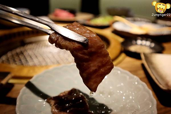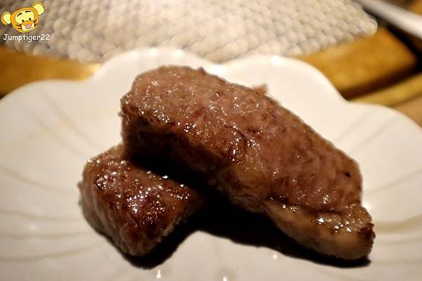 泥抗抗抗~這個和牛的油脂還在滴,跳虎的口水也跟著滴,還好從上烤網到入口只需要三分鐘,這點程度的忍耐還做得到XD