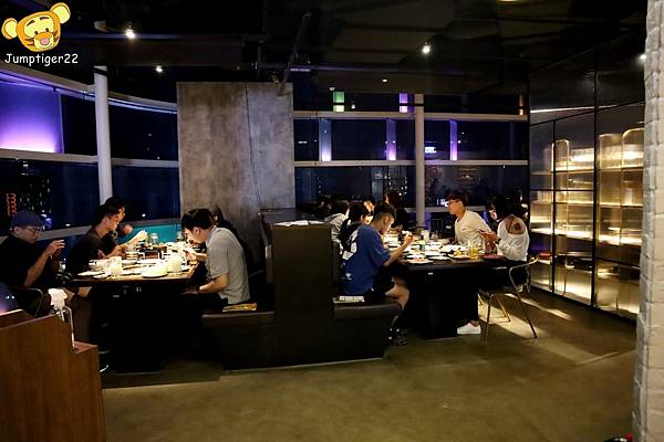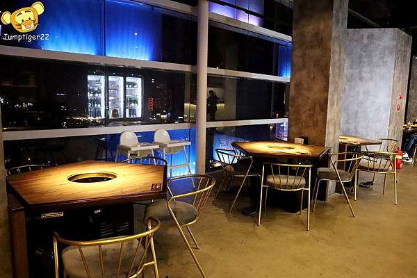 路易奇火力會社的用餐空間和我們常見的燒肉餐廳不同,寬敞且帶點夜店風,因為窗外正是大立百貨經典的變色外牆