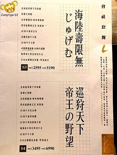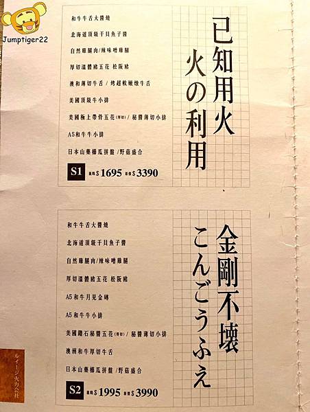貪食的跳虎想要多食一點日本和牛,那就選「金剛不壞」當作入門吧看起來也是很不錯的菜色!