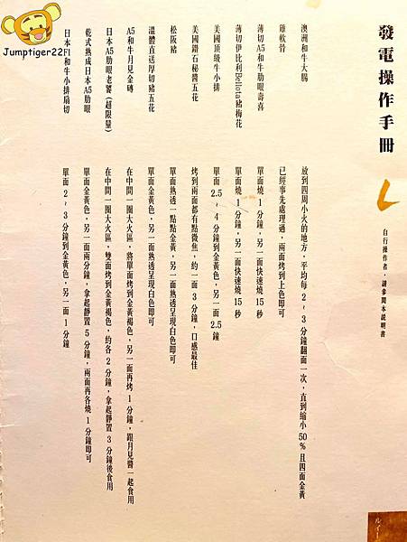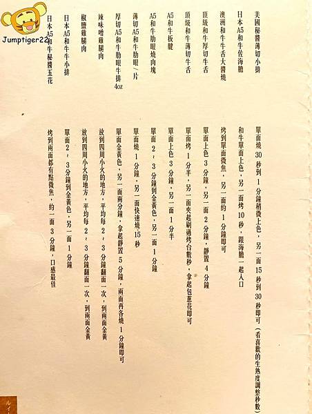 每一品項都有詳細列出大概要烤多久、多久要翻面等注意事項,這讓友人用餐邊烤邊拜讀,實在有趣!