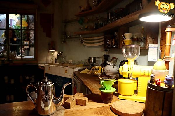 ▼吧台桌上有很多咖啡器皿.色彩夜市繽紛可愛