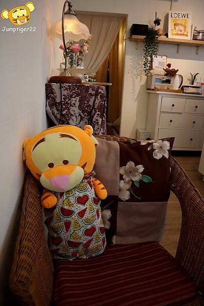 幸運之神分配給跳虎的座位,超可愛,雖然擺飾非常佔據桌面空間,但是這一切要素都要有才能成為網美下午茶店啊!