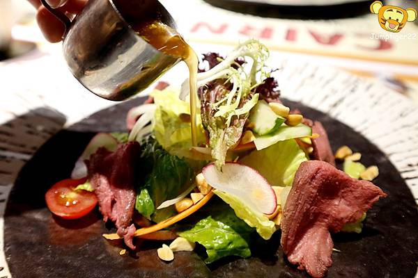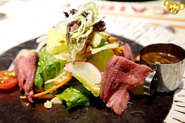 沙拉除了一堆菜菜之餘還有這樣鮮嫩的牛肉實在太完美惹!