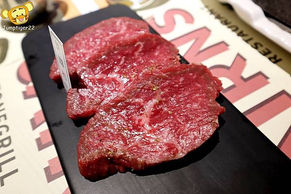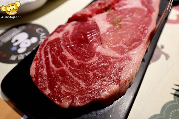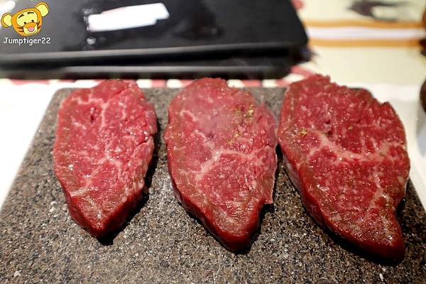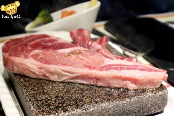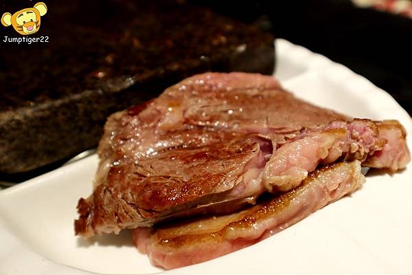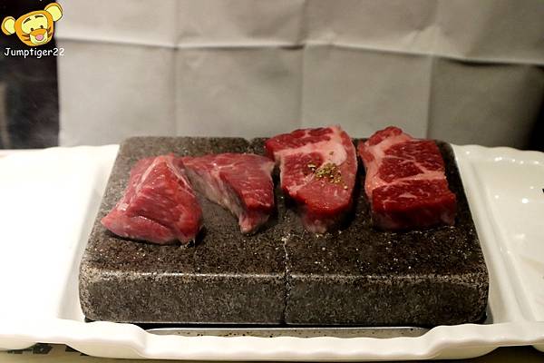 基本上凱恩斯的肉品上桌就是像這樣,紅通通的新鮮肉塊上桌,店員會先示範一下如何岩燒,剩下的就交由老饕們自由調整囉~