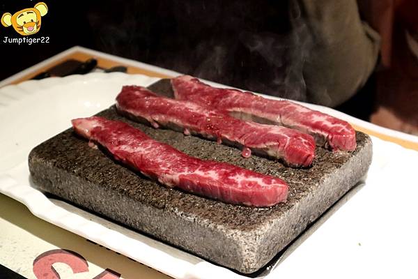 我的美國和牛被迅速放上石板,發出悅耳的滋滋聲真的無敵療癒!!!