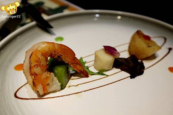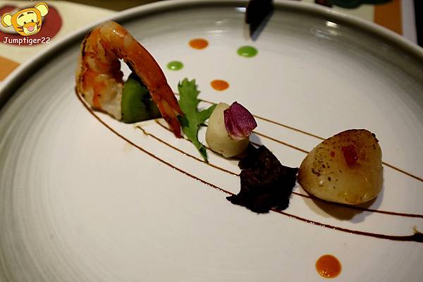 炙燒干貝與舒肥甜海蝦佐義式老醋膏