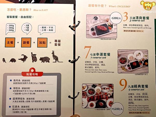 而菜單上頭的價格都是以七道幸運套餐為基準,所以如果選擇三道則減$200,如果選擇九道則加$200唷