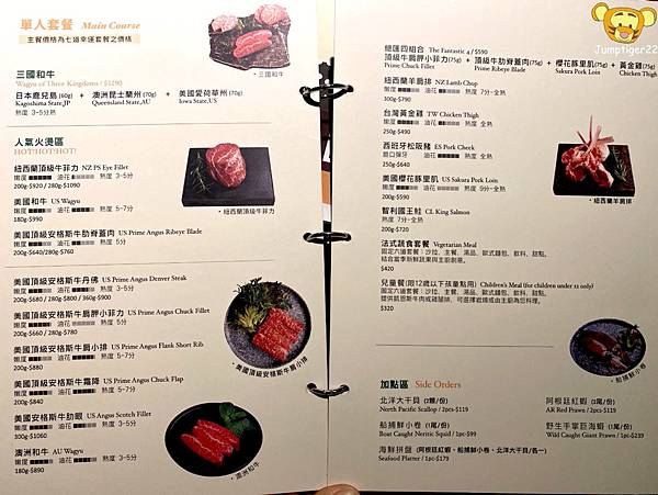 單人套餐的部分,可以選擇的肉品也很多,我們家光看菜單可能就花半小時了XD (跳虎一家人都有選擇障礙哈哈)