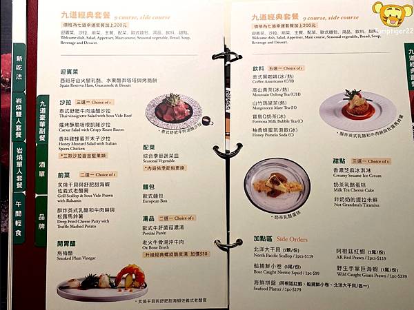 九道菜的部分多了前菜和甜點可以選擇,其實如果食量大一點的我覺得頗超值的拉哈哈