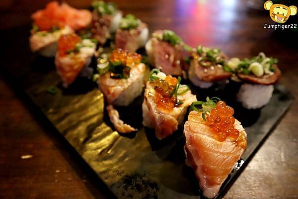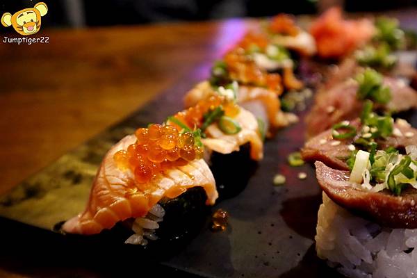 炙燒過的鮭魚半生熟剛剛好,鋪上橘紅透亮的鮭魚卵再加上海苔與蔥花