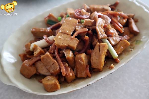 雖然整道餐點偏油,卻油的讓人好喜歡,豆乾多汁與帶嚼勁的魷魚,讓人越咀嚼越香~