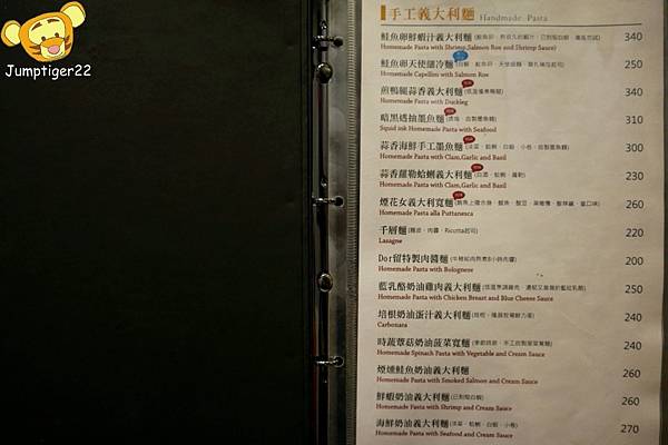 Dor留的菜但,一整面選項當然都是手工義大利麵啊