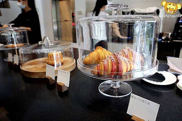 甜點櫃上還有些可頌、蝴蝶餅等烘焙類點心,不過感覺數量不多,要吃要早點來唷!