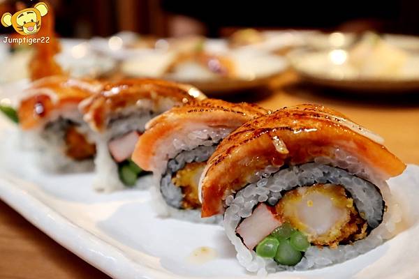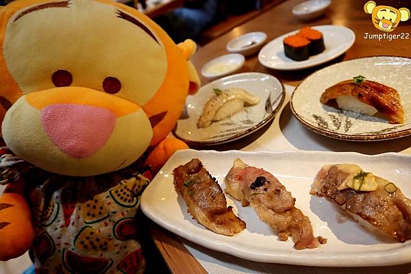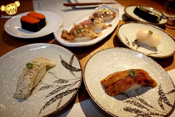 跳虎說想不到吃日式壽司還可以吃到肉肉組合,太開心惹~~~(後放的比目魚鰭邊和炙燒星鰻還是不放過XD)