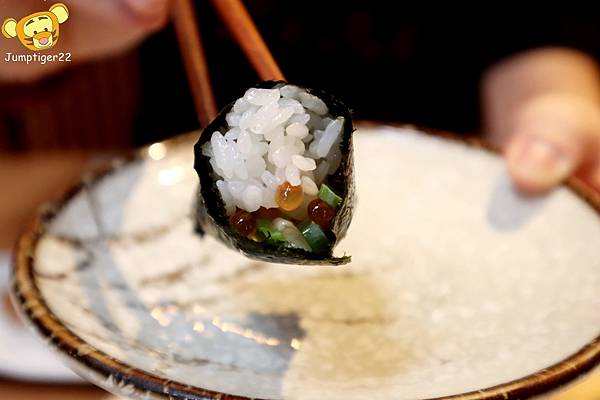 其實這應該不能算是手捲,比較偏向是細卷的模式,但我其實有點點小失望,畢竟鮭魚卵包在裡頭讓人感覺份量有點少!