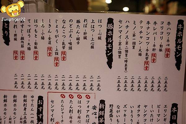 內臟的部分可以看到分成牛/豚/雞三種選擇,看到限量二字我就想直接點XD
