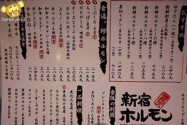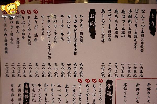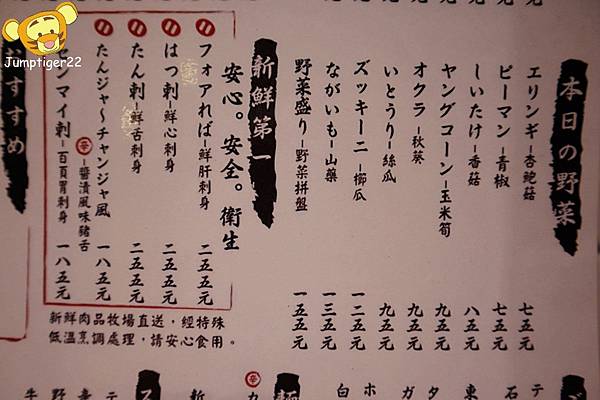 放置烤爐的木盤上就有菜單,日文與中文兼具的菜單,不用怕看不懂拉(而且我們人在台灣捏XD)