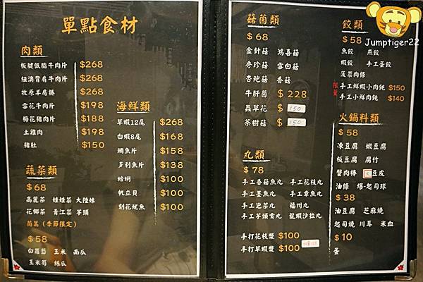 既然有鍋當然有各類火鍋食材,單點的肉片、海鮮、菇類、丸子餃子類、火鍋料該有的也都沒有缺