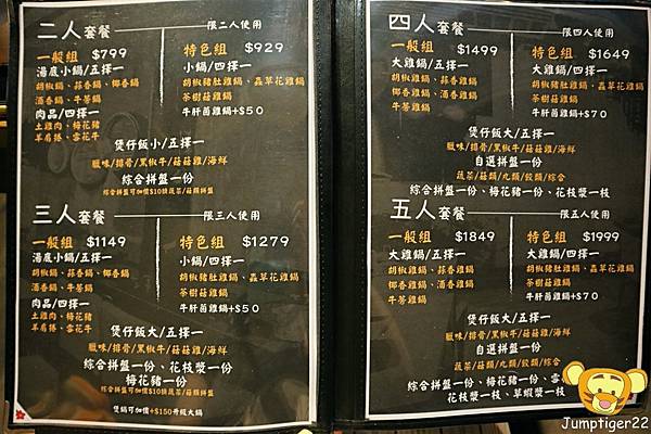 除了個人套餐,鍋濤還一路搭出三、四、五人的套餐組合,想怎麼配都方便!